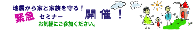 さて当社では、皆さんに安全で安心して暮せるマイホームを実現していただくために、「マイホームと家族を守るための、地震に備えのある家づくりの基礎知識」を学んでいただくセミナーを開催することといたしました。